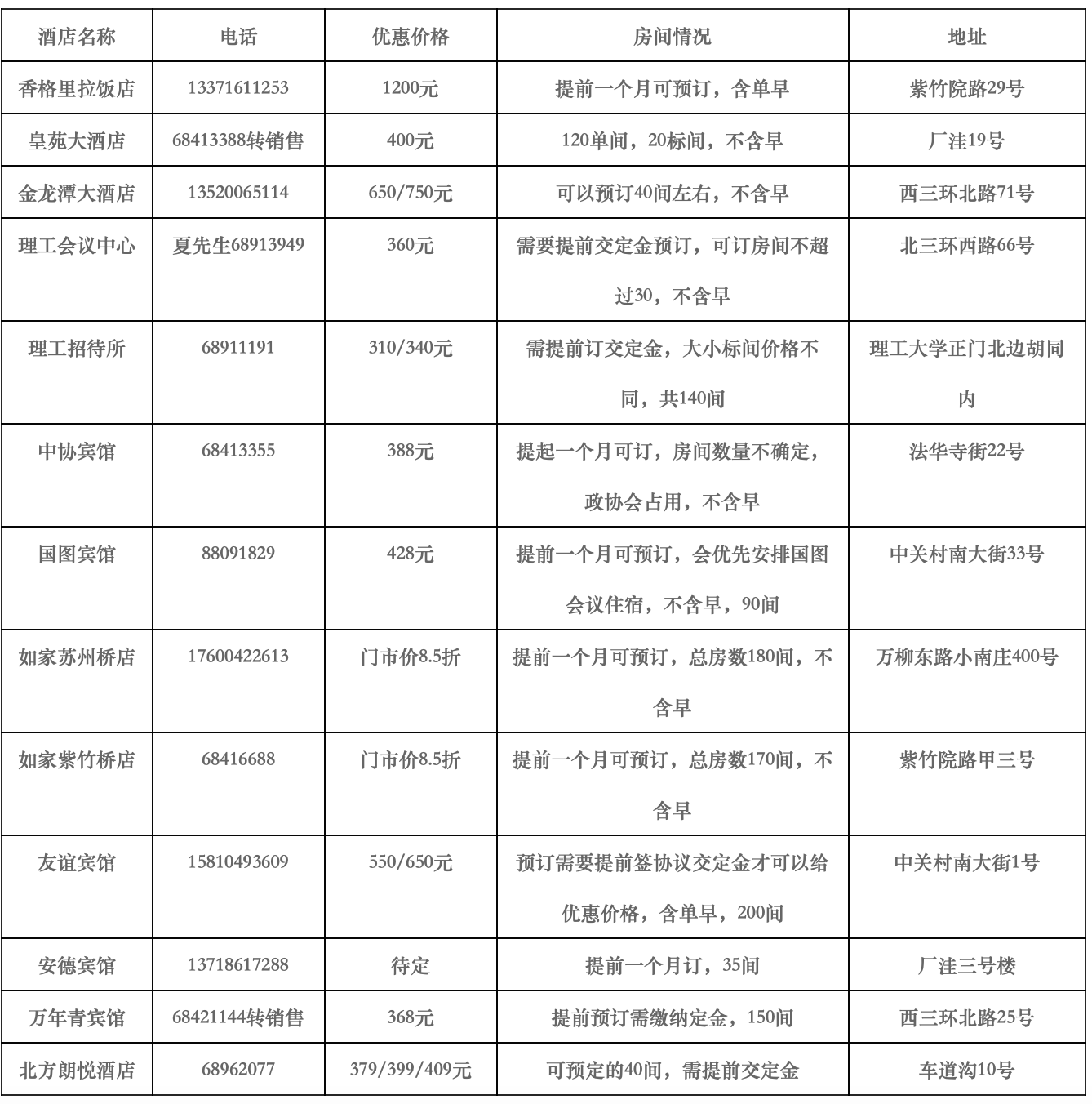 附:周邊住宿:請參會(huì)人員自行預(yù)訂住宿,以下是學(xué)校周邊酒店信息供您參考,優(yōu)惠價(jià)格限于團(tuán)體訂房10間房以上可享受。
