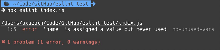 index.js 中的代碼命中了 no-unused-vars 這個規(guī)則,默認情況下,這個規(guī)則是會報 error 的,也就是 ESLint 不允許代碼中出現(xiàn)未被使用的變量。這是一個好習慣,有利于代碼的維護。