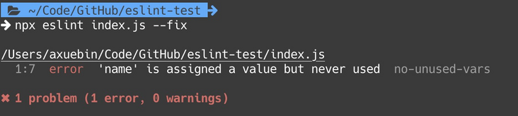 執(zhí)行 eslint xxx --fix 可以自動修復一些代碼中的問題,將無法自動修復的問題暴露出來。比如上文中提到的引號和分號的問題,就可以通過 --fix 自動修復,而 no-unused-vars 變量未使用的問題,ESLint 就無法自動修復。