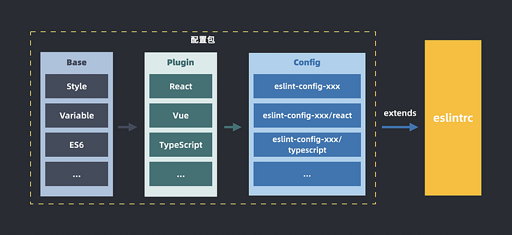 以上問題在真實開發(fā)中都是存在的,所以在代碼規(guī)范的工程化方案落地時,一個單一功能的配置集是不夠用的,這時候還需要考慮這個配置集如何抽象。為了解決以上問題,這里提供一種解決方案的思路: