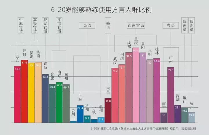 有一些觀點,我們需要拋棄。比如趨勢,過去幾十年是這個趨勢,那將來的幾十年,甚至幾百年,就必然是這個趨勢嗎?普通話在過去20年間將大量的青少年培養(yǎng)成普通話單語人,以后也是這個趨勢嗎?需要知道,推普其實是從20世紀50年代開始的,但是效果真正涌現(xiàn)還是到了2000年以后,為什么呢?