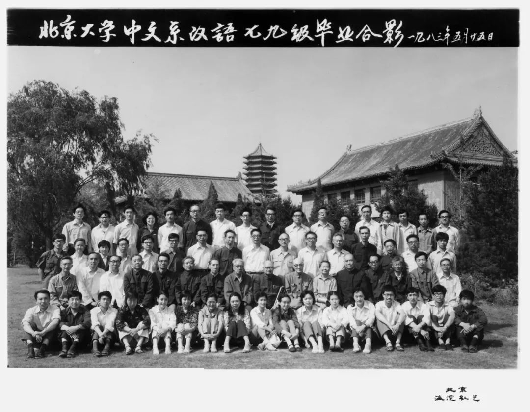 北大中文系漢語專業(yè)79級畢業(yè)合影(二排左四為朱德熙先生,三排右四為陸儉明先生)