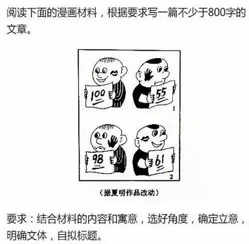 這個(gè)作文題的形式還不錯(cuò)——用漫畫作為作文材料,符合現(xiàn)在學(xué)生的接受風(fēng)格,這樣的題目好寫,每個(gè)考生都有話可說(shuō),至少據(jù)此完成一篇作文不是難事,也不容易跑題。