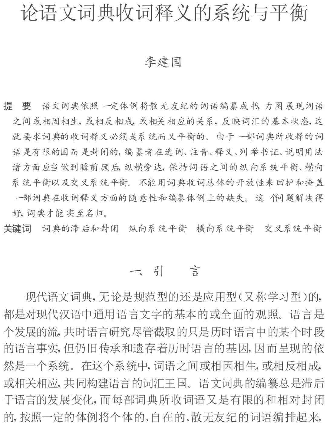 語文詞典?詞典釋義——論語文詞典收詞釋義的系統(tǒng)與平衡:李建國