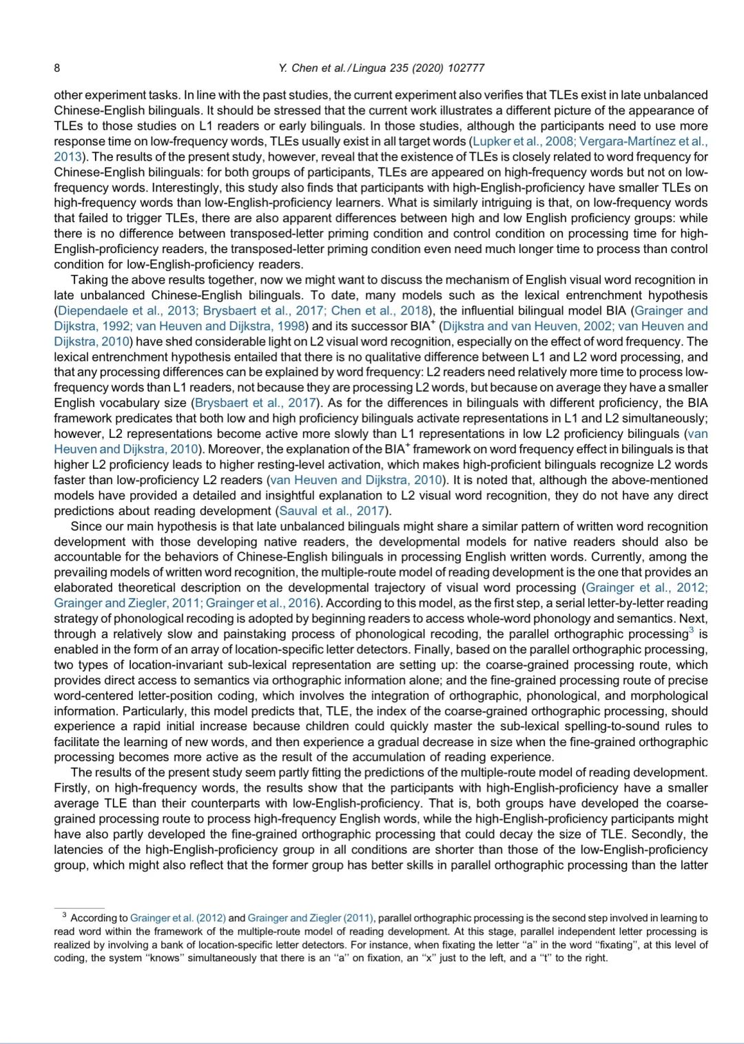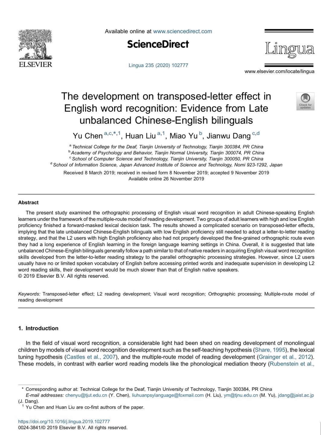 陳彧 劉歡 于秒 黨建武|英語單詞感知的字母換位效應(yīng)發(fā)展——來自漢英非平衡雙語者的證據(jù)