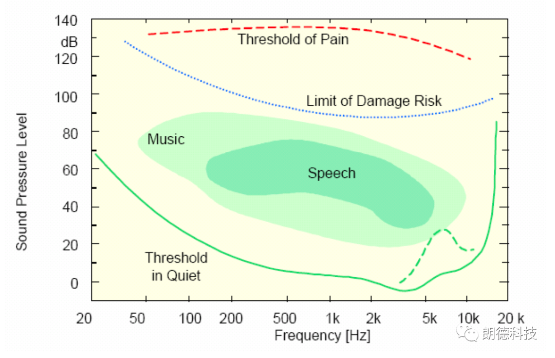 圖3中顯示了人耳的聽(tīng)覺(jué)范圍,能看出以下幾點(diǎn):