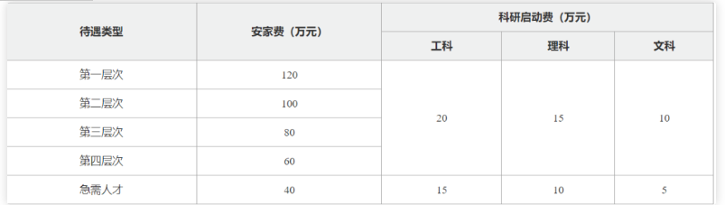 3.提供科研啟動(dòng)及平臺(tái)建設(shè)配套經(jīng)費(fèi):自然科學(xué)類500-800萬元、人文社科類100萬元。3.提供科研啟動(dòng)及平臺(tái)建設(shè)配套經(jīng)費(fèi):自然科學(xué)類300-500萬元、人文社科類60-80萬元。1.人才引進(jìn)費(fèi)