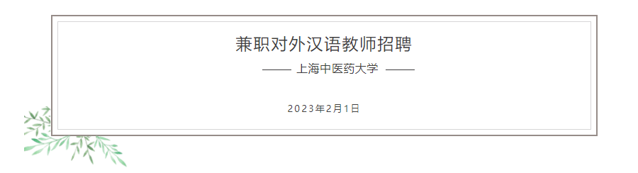 招聘 | 上海中醫(yī)藥大學(xué)國際教育學(xué)院招聘兼職對外漢語教師 2023年02月02日