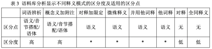 3.2.2.2 語(yǔ)料庫(kù)分析未確定區(qū)分度的四種釋義模式