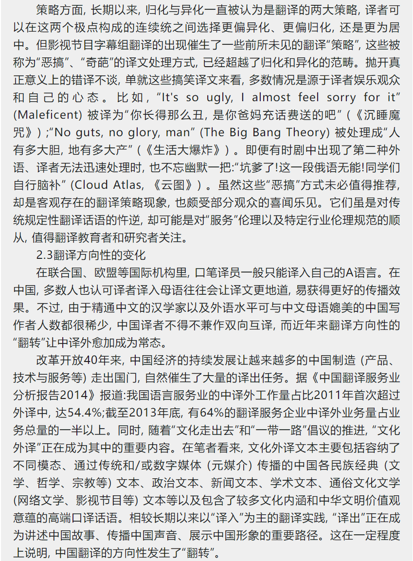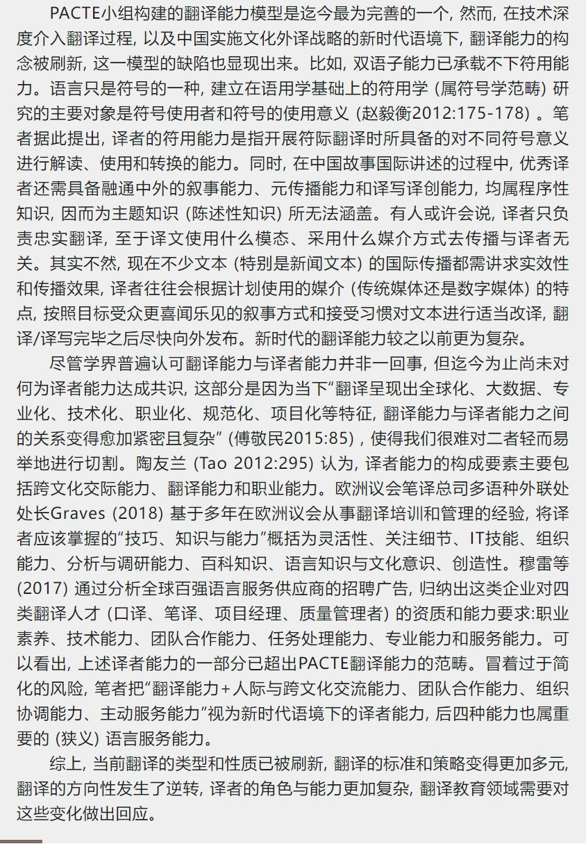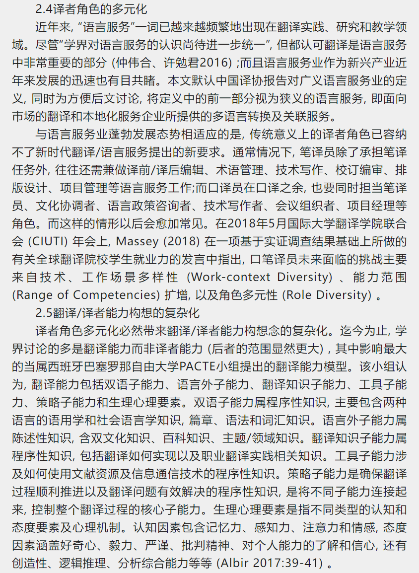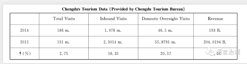 03 新時代語境下翻譯教育存在的問題 盡管翻譯領域已經(jīng)發(fā)生了如前所述的諸多變化, 但多數(shù)開展翻譯教育的院系在應對變化方面卻顯得遲滯, 主要表現(xiàn)如下: 首先是對翻譯性質(zhì)及類型的變化認識不足。不少學校翻譯實務教學缺乏有針對性的設計, 比如如何在教學中體現(xiàn)人機互動的翻譯特點, 如何發(fā)揮人工翻譯及機器翻譯各自的優(yōu)勢, 如何做好譯前和譯后編輯等等。目前雖然開設CAT課程的學校很多, 但能夠有效開設機器口譯, 真正將人機互動融入教學過程的學校并不多見, 而開設CAI (機助口譯) 課程, 引入語音識別技術的學校極為罕見。同時, 我們的教學依然停留在語際而非符際翻譯層面。雖然語際翻譯依然是當下翻譯任務的主體, 但符際翻譯已在現(xiàn)實生活中屢見不鮮。即便是普通文本翻譯, 也可能在某些時候出現(xiàn)多模態(tài)翻譯的處理方式。比如, 下面這段話的英文翻譯就可生成不同的文本形態(tài): 根據(jù)成都市旅游局最新公布的數(shù)據(jù), 2015年我市共接待游客1.91億人次, 相比2014年的1.86億人次, 同比增長了2.75%;其中, 接待入境游客230.14萬人次, 比2014年的197.8萬人次增長了16.35%;接待國內(nèi)過夜游客5587.91萬人次, 比上一年的4650萬人次同比增長20.17%。實現(xiàn)旅游總收入2040.19億元, 同比增長22.64%, 2014年為1930億元。 除了完全依據(jù)原文的文字文本進行翻譯外, 如下的多模態(tài)翻譯則是另一種處理方式: 相較一板一眼的文字對譯, 這樣的多模態(tài)翻譯看上去更為簡潔明快、一目了然, 當以PPT、圖文并茂的小冊子等方式呈現(xiàn)時, 通過不同顏色和字體增加一些設計感, 或許會產(chǎn)生更好的傳播效果。然而目前, 多模態(tài)翻譯在我們的教學內(nèi)容中極少出現(xiàn), 也鮮有學校開設視聽翻譯、游戲翻譯等實操類課程, 這會讓學生在接觸到這些類型的真實翻譯任務時很難立馬上手。 其次, 對翻譯標準和策略的多元化了解不夠。毫無疑問, “信達雅”與“完整準確忠實”的標準依然應該構成翻譯實務教學中的首要和重要部分, 但不應該是全部。目前我們的翻譯教學仍然局限于全譯, 對于以改譯、節(jié)譯、縮譯、編譯為主的新聞翻譯, 以及實用文體文本的本地化翻譯則很少涉獵。同時, 雖然我們并不贊成在課堂上教授“惡搞”式翻譯, 但將其作為真實翻譯案例納入翻譯批評教學, 讓學生更好掌握歸化異化翻譯的尺度, 培養(yǎng)學生針對翻譯文本的目標受眾選擇適當翻譯策略的意識卻是積極有效的。 第三, 對翻譯方向性翻轉(zhuǎn)后譯出訓練“權重”的加大重視不夠。長期以來, 翻譯課程設置中, 中譯外和外譯中被給予同等權重, 這原本無可厚非, 翻譯訓練也確實需要涵蓋譯入與譯出。但隨著我國譯出需求量加大, 翻譯專業(yè)學生將來要面臨更多的中譯外任務, 而譯出相較譯入需要更好的外語基礎和更多的翻譯訓練量。如何在翻譯專業(yè) (特別是翻譯碩士層面) 的教學中加大中譯外課時量和課程種類, 將譯出作為翻譯中的難點來應對, 是高校不應忽視的問題。 第四, 對譯者角色的多元化應對不足。不少BTI/MTI院系對自己的學生以后可能的就業(yè)方向考慮較少, 對未來工作場景多樣性的前瞻性設計不夠, 因此課程結構單一, 缺乏系統(tǒng)性、針對性和特色性。一些學校并未立足本校生源、師資及本地市場需求狀況, 不切實際地以“會議同傳”、“高級筆譯”等方向吸引學生, 卻很少開設技術寫作、術語管理、本地化與項目管理等更為適合的語言服務類課程。其結果是學生畢業(yè)之后既無法勝任“高翻”工作, 也很難在廣闊的語言服務業(yè)領域找到自己的合適位置。 第五, 對“擴容”后的翻譯/譯者能力關注不多。翻譯質(zhì)量的優(yōu)劣取決于譯者翻譯能力的高下, 但出色的翻譯能力需要學生具備扎實的雙語基礎和較長時間的訓練。對許多院校來說, 要讓學生今后在 (狹義的) 語言服務領域里更好地承擔多元譯者角色, 強調(diào)后四種譯者能力 (人際與跨文化交流能力、團隊合作能力、組織協(xié)調(diào)能力、主動服務能力) 的培養(yǎng)可能更為現(xiàn)實, 因為它們可在一定程度上彌補翻譯能力之不足。然而, 不少學校的教學設計基本聚焦翻譯能力, 較少關注譯者能力?;谌蝿?(Task-based) 、項目 (Project-based) 和案例 (Case-based) 的翻譯教學, 以及各種實習實踐活動本是培養(yǎng)譯者能力的良好機會, 但許多高校要么較少開展此類教學活動, 要么并未將相關能力發(fā)展的設計科學有效地融入實踐活動中。如何在能力培養(yǎng)方面揚長避短需要各校合理設計。 綜上, 一方面是高校翻譯人才培養(yǎng)機構面對翻譯實踐領域的變化時反應遲緩, 另一方面是開設翻譯專業(yè)本科和碩士項目的學校有增無減, 且多屬低端重復建設。翻譯教育如何順應時代變化, 眾多翻譯培養(yǎng)院校未來將何去何從, 值得我們深思。 04 新時代語境下翻譯人才培養(yǎng)模式再探究 一直以來, 多數(shù)翻譯專業(yè)本科和碩士培養(yǎng)單位的課程設置以翻譯基礎課程 (為翻譯做準備的外語聽、說、讀、寫類課程) 、基礎翻譯課程, 以及以不同名稱出現(xiàn)的“中高級”翻譯類課程為主, 多以通用型翻譯人才培養(yǎng)為重, 同質(zhì)化傾向嚴重。不少學校對翻譯領域發(fā)生的諸多